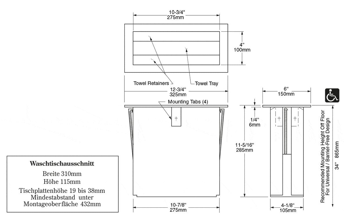 Abmessungen: 325 mm (B) x 150 mm (T)
