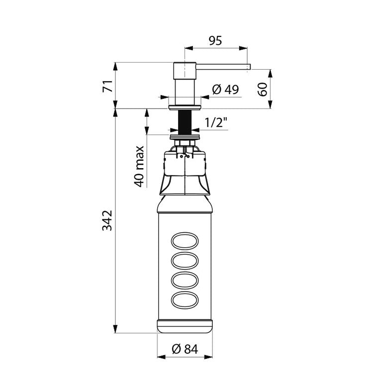 Seifensp. Ausl. gerade m. Kartusche, Seifentank 1 l, Edst.