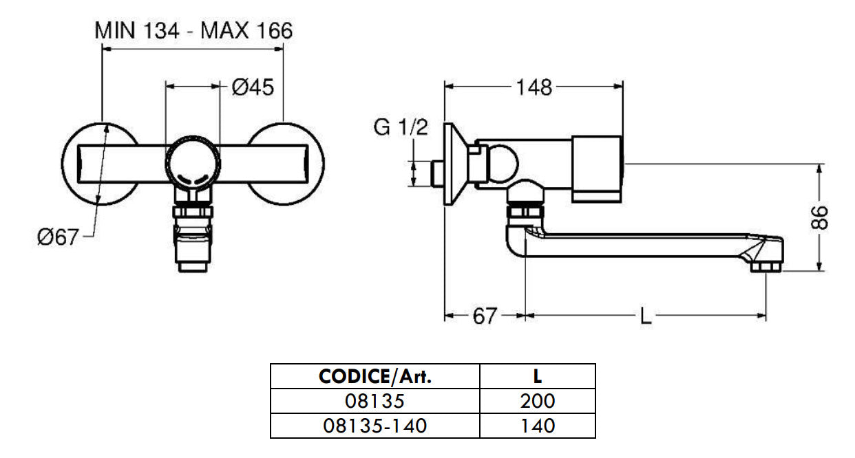 - Schwenkauslauf (Länge variiert je nach Artikelnummer)