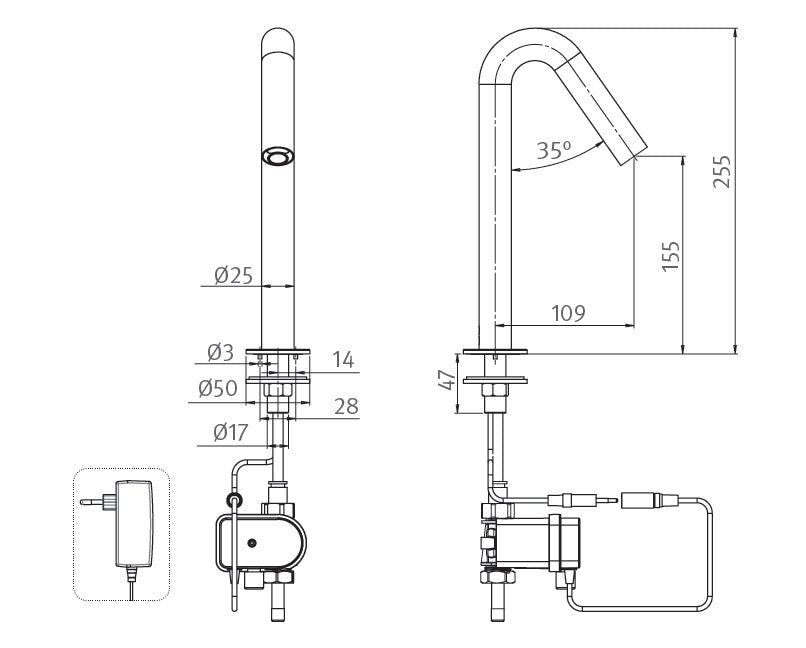 Sintra Armatur, Netzbetrieb, Sensorarmatur für Kalt- oder vorgemischtes Wasser
