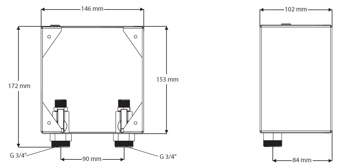 - Abmessung Unterputz-Mauerkasten: 145 x 155 x 100 mm