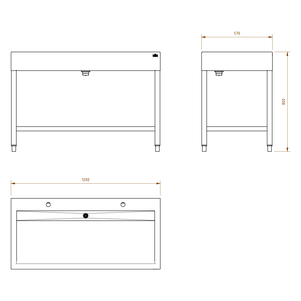 Waschrinne aus Edelstahl, mit Hahnbank und Unterbau