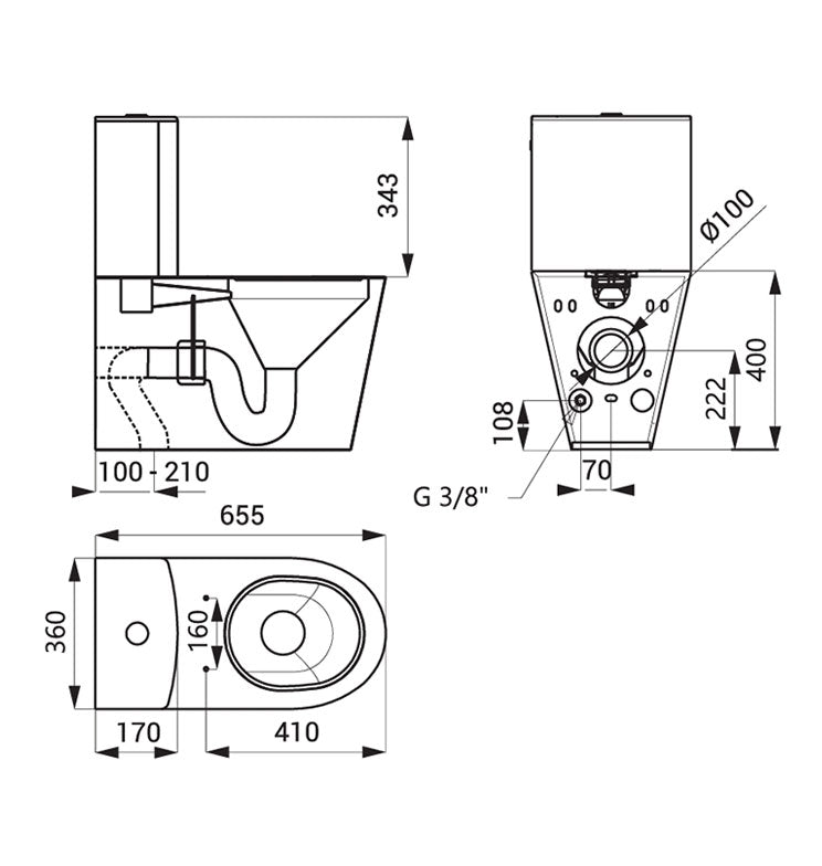Integrierter Spülkasten, inkl. Abdeckstöpsel für Sitzverschraubung
