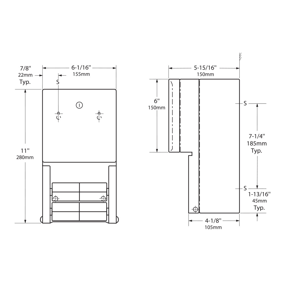 - Verschluss: Integriertes Zylinderschloss (flächenbündig), gleichschließend mit anderen Bobrick-Sanitäraccessoires