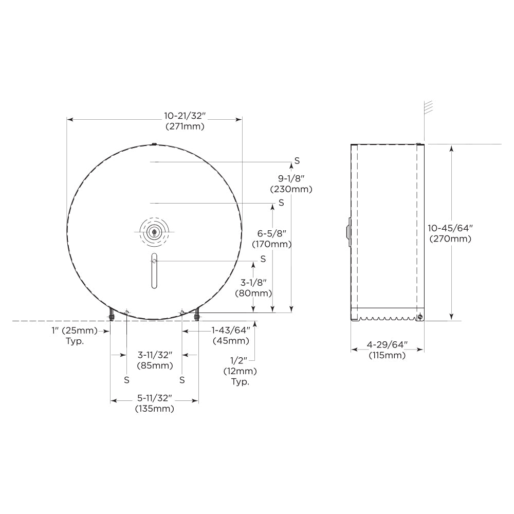 - Verriegelung: Zylinderschloss, gleichschließend mit anderen Bobrick-Accessoires