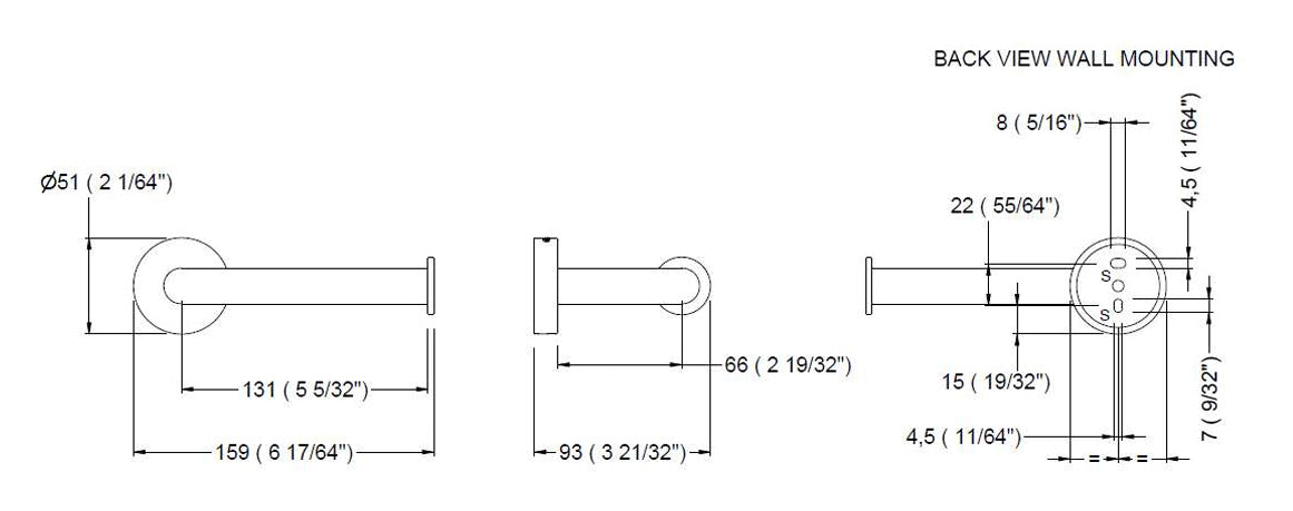 Verdeckte Wandplatte: Hergestellt aus AISI 304 Edelstahl, an der Wand mit zwei Schrauben befestigt.